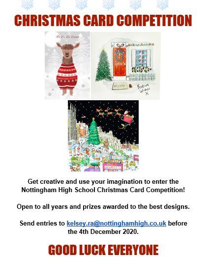 Christmas card competition. Have a go at creating your own design. Open to all age groups. nottinghamhighschooljournalism Uncategorized 4th Nov 2020 1 Minute Share this: Click to share on X (Opens in new window) X Click to share on Facebook (Opens in new window) Facebook Like Loading... Related Published by nottinghamhighschooljournalism View all posts by nottinghamhighschooljournalism Published 4th Nov 2020