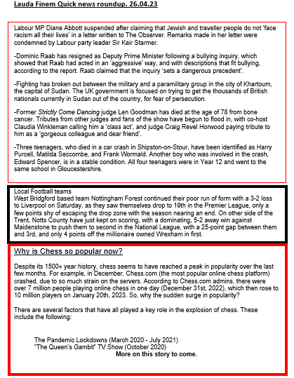 - Volodymyr Zelensky has been on a visit to meet UK PM Rishi Sunak, who has pledged more weapons to Ukrain after Germany promised them $7bn in Leopard tanks a few weeks earlier. NATO is still rejecting Ukrainian requests to send F-16 fighter jets to Kyiv.
