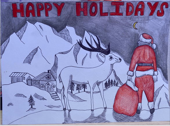 Christmas card competition entries. We had a fantastic range of entries this year. Enjoy having a look through some of the best.