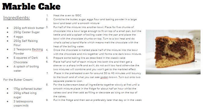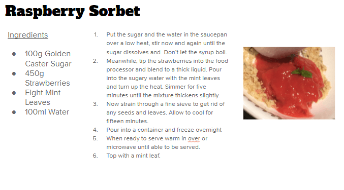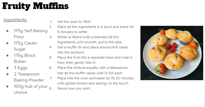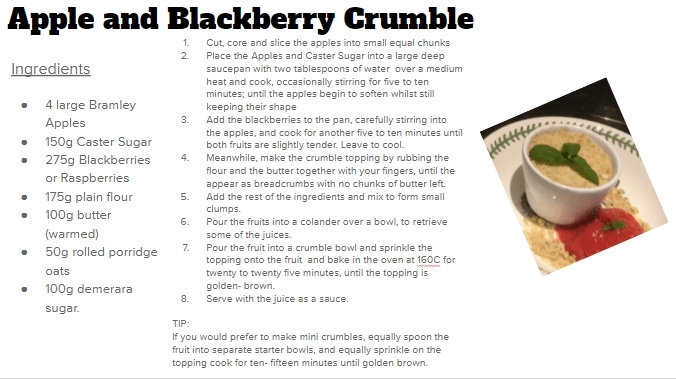 • Recipes