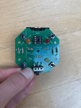 One of the various projects you can undertake at the club – a handheld Simon game in which it flashes a specific order of lights and you must input the same order.