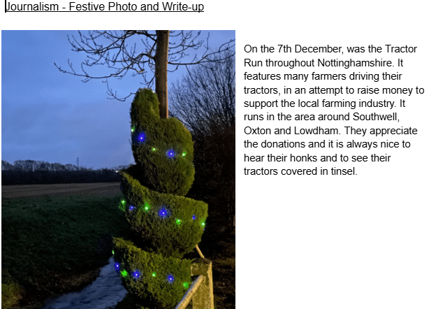 Journalism Christmas card entries and winners! The first place was given to the penguin card and second place was given to the Nottingham skyline. Well done to all! Merry Christmas from the journalism club.